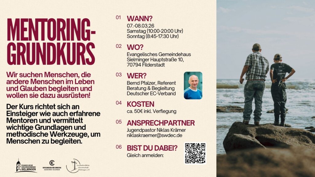 Schön, dass du unsere Website besuchst und uns kennenlernen möchtest. Wir arbeiten innerhalb der Evangelischen Landeskirche in Württemberg und gehören zum Christusbund. In unseren Veranstaltungen für Jung und Alt teilen wir den Glauben an Jesus Christus. Wir wollen zusammen mit anderen Menschen authentische Gemeinschaft erleben, Gott loben und von ihm inspiriert werden. Sicher findest auch du ein passendes Angebot.