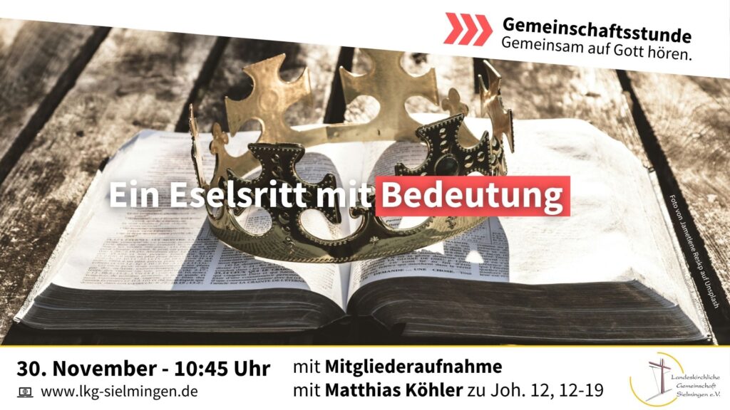 Die Gemeinschaftsstunde findet in der Regel sonntags um 10:45 Uhr im Vereinshaus statt. Oft gibt es einen Livestream und die Gemeinschaftsstunde steht im Anschluss eine gewisse Zeit zum Abruf bereit.
