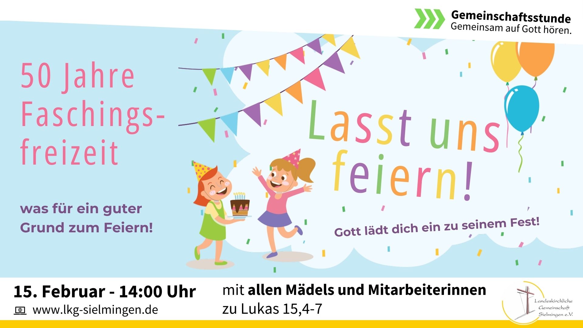 Diese Gemeinschaftsstunde findet im Rahmen der Faschingsfreizeit vom 14.-18. Februar im Vereinshaus statt. Die Mitarbeiterinnen haben mit den Mädels ein buntes Programm vorbereitet.
