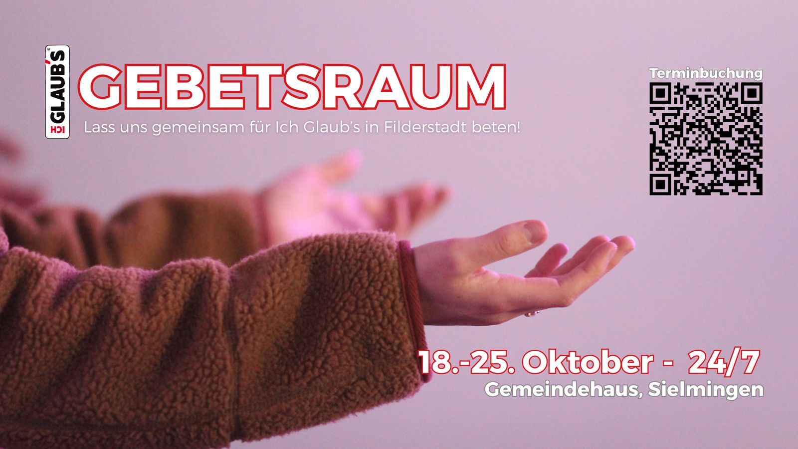 Dafür haben wir einen Gebetsraum eingerichtet, in welchem rund um die Uhr, über die komplette Ich Glaub’s Woche hinweg, Gemeinschaft mit Gott erlebt werden kann. So geht’s: