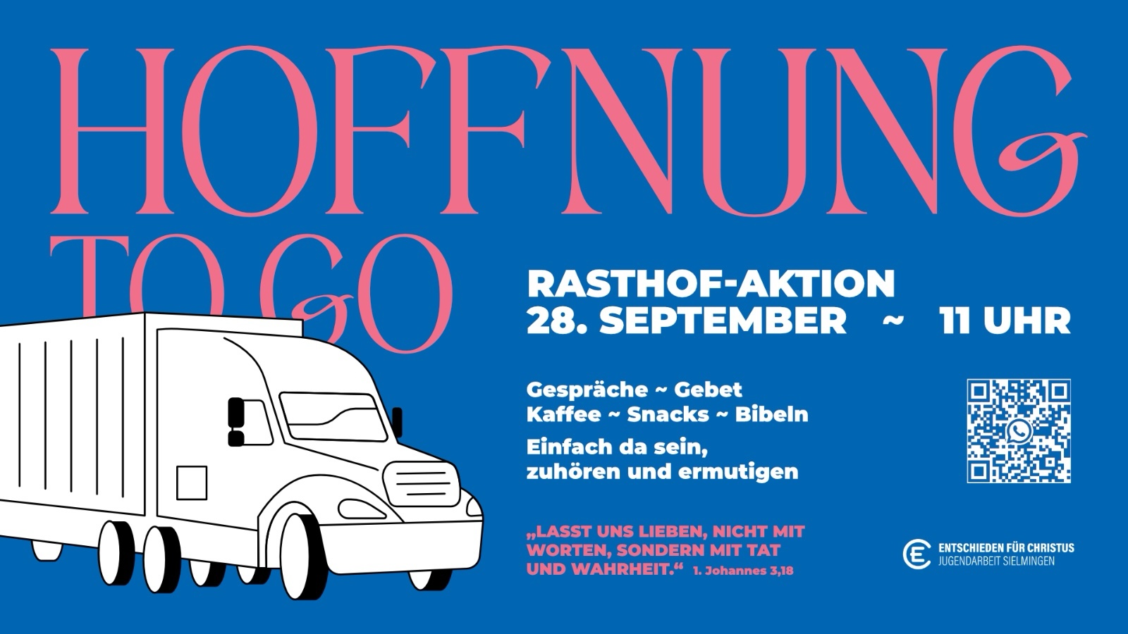 Am 28.09. wollen ein paar Leuten vom Jugendbund wieder an einen Rasthof fahren, um dort mit den Menschen ins Gespräch zu kommen und Essen sowie Kaffee auszugeben.